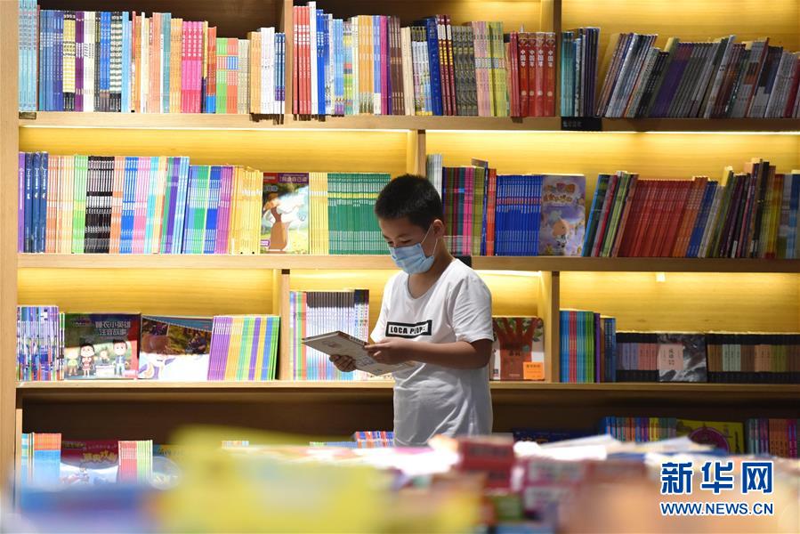 7月5日,一名小朋友在河北省定州市新華書店挑選圖書。近日,河北省定州市新華書店在做好疫情防控的前提下,開展“樂享圖書嘉年華”系列活動(dòng),通過舉辦圖書聯(lián)展、親子閱讀、少兒讀物推介等活動(dòng),吸引少年兒童走進(jìn)圖書館,感受書香陪伴的夏天。新華社記者朱旭東攝