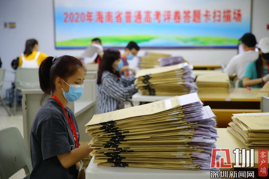 2020年7月13日,在海南師范大學(xué)高考評卷場,工作人員仔細(xì)拆封考卷并進(jìn)行掃描入電腦,整個過程井然有序。在評卷現(xiàn)場的入口,除了有武警把守之外,所有工作人員進(jìn)入到評卷場均有專人使用手柄式金屬探測器對其進(jìn)行安檢,并通過身份證識別系統(tǒng)中進(jìn)行身份識別,方可以進(jìn)入??忌痤}卡由武警24小時值守,并實(shí)行嚴(yán)密的視頻監(jiān)控。