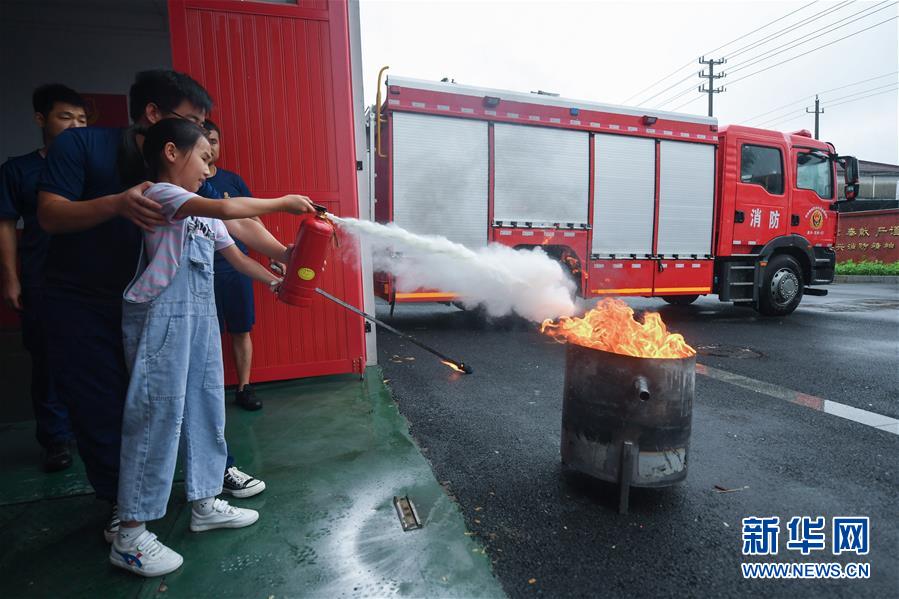 7月16日,東林鎮(zhèn)消防綜合應(yīng)急救援隊(duì)隊(duì)員在給學(xué)生們講解滅火器的使用方法。當(dāng)日,浙江省湖州市吳興區(qū)東林鎮(zhèn)舉辦暑期“安全防護(hù)小超人”主題活動(dòng)?;顒?dòng)由醫(yī)護(hù)人員、消防隊(duì)員等為學(xué)生及家長講授日常安全避險(xiǎn)及溺水急救知識(shí),中小學(xué)們還在現(xiàn)場學(xué)習(xí)了簡易包扎、心肺復(fù)蘇的正確方式,并了解滅火器、滅火毯等消防器材的使用,為學(xué)生平安過暑期打好安全防護(hù)“預(yù)防針”。新華社記者 徐昱 攝