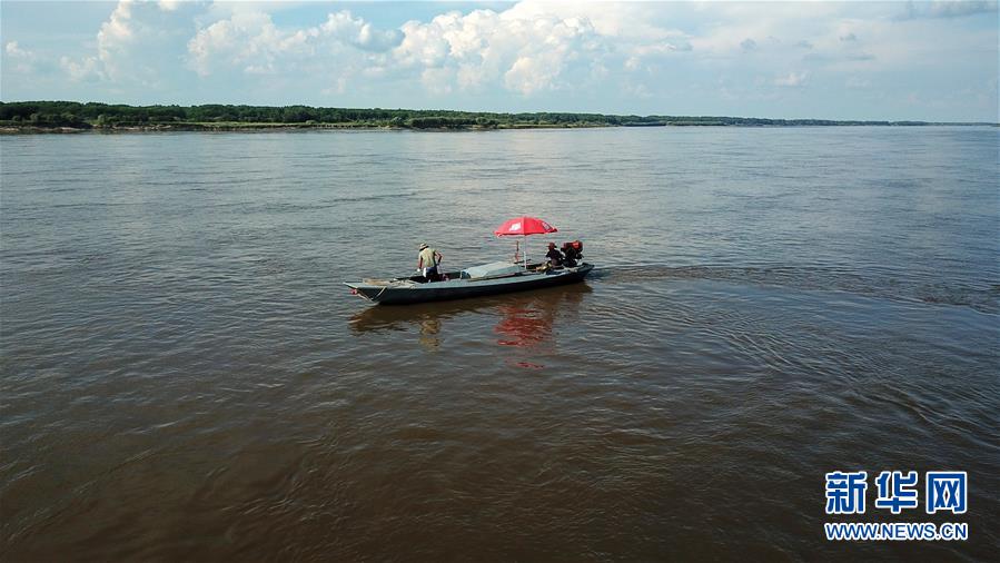 這是7月22日拍攝的在江中打魚的漁船(無人機(jī)照片)。新華社記者王建威攝