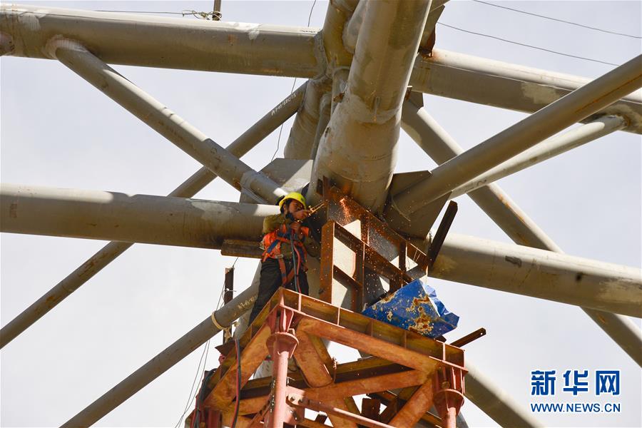 7月27日,工人在拉薩貢嘎國際機(jī)場T3航站樓的工地上作業(yè)。新華社記者 田金文 攝