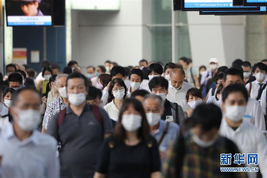7月31日,在日本東京,人們戴口罩出行。新華社記者杜瀟逸攝