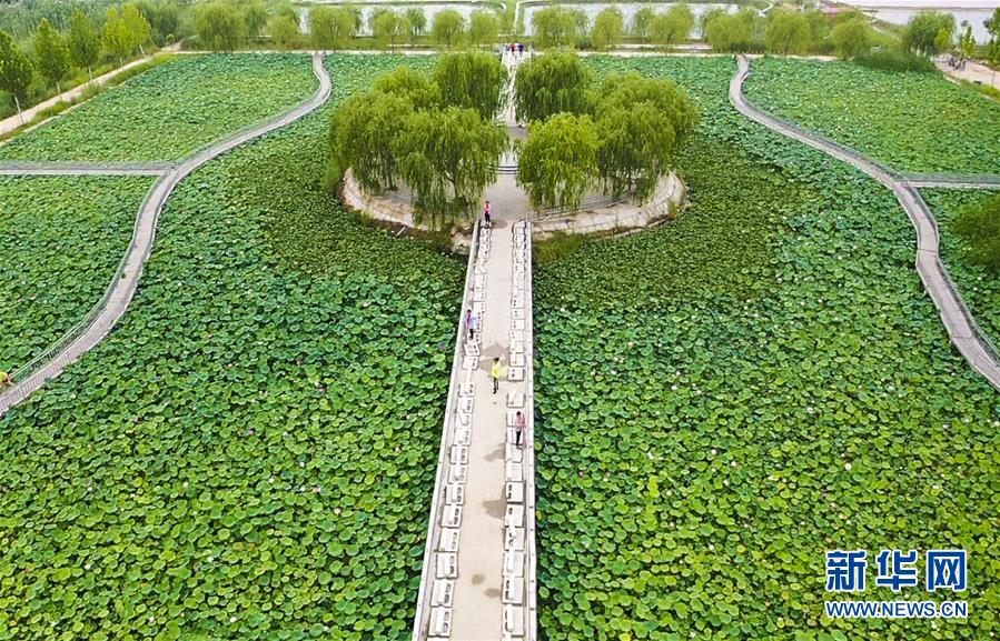 8月6日,游客在河北省永清縣里瀾城鎮(zhèn)金華湖觀賞荷花(無人機照片)。夏日時節(jié),河北省永清縣里瀾城鎮(zhèn)金華湖荷塘的荷花爭相開放,吸引市民和游客前來游玩觀賞。新華社記者李曉果攝