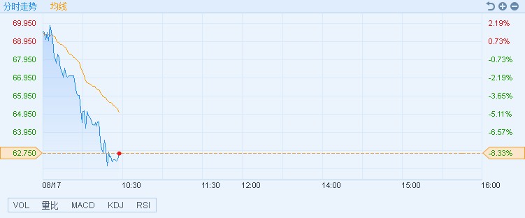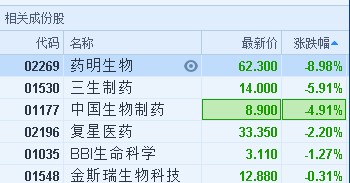 智通財經(jīng)APP獲悉,受產(chǎn)業(yè)政策影響,醫(yī)藥股普跌,藥明生物(02269)領(lǐng)跌板塊,連續(xù)三個交易日下挫,跌逾兩成。截至10時26分,跌8.33%,報價62.75港元,成交額2.27億。
