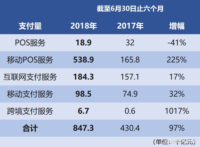這個(gè)數(shù)據(jù),其實(shí)是比整個(gè)第三方支付行業(yè)的成長(zhǎng)還要高出一半以上的——根據(jù)Frost & Sullivan統(tǒng)計(jì)的行業(yè)數(shù)據(jù),截至2018年底,中國(guó)第三方支付行業(yè)的支付交易總量預(yù)計(jì)將達(dá)到人民幣225.3萬億元,較2017年上升47%。