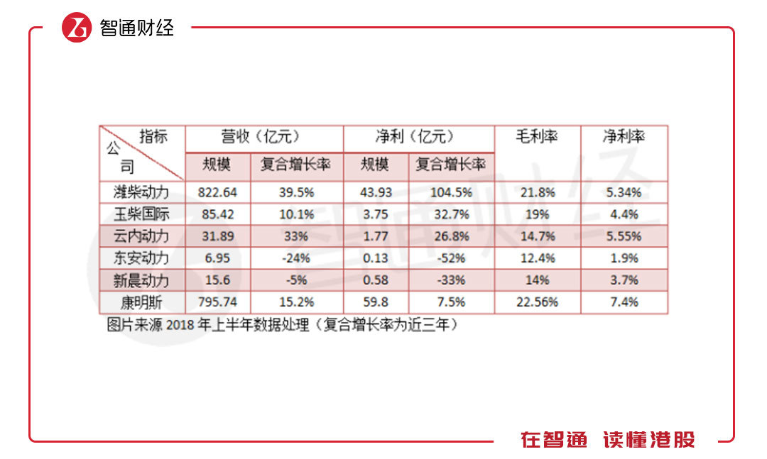 國(guó)內(nèi)的發(fā)動(dòng)機(jī)供應(yīng)市場(chǎng)高度集中,前十大供應(yīng)占據(jù)了超過(guò)7成的份額,主要為柴油機(jī)供應(yīng),適用于商用車,龍頭濰柴動(dòng)力(02338)市場(chǎng)份額最大。汽油機(jī)適用于乘用車,由于主要為內(nèi)供,市場(chǎng)數(shù)據(jù)較少。與國(guó)際龍頭康明斯相比,上半年國(guó)內(nèi)的柴油機(jī)企業(yè)賺錢(qián)能力還是較低的。