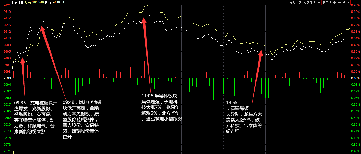 指數(shù)今日小幅低開(kāi),開(kāi)盤(pán)后不久在燃料電池、汽車等板塊的帶領(lǐng)下,三大指數(shù)積極上攻一度翻紅,但做多動(dòng)能未能持續(xù)沖高回落。午后指數(shù)弱勢(shì)盤(pán)整,創(chuàng)投、次新股輪番拉升,但未改兩市橫盤(pán)局面。個(gè)股漲跌參半。