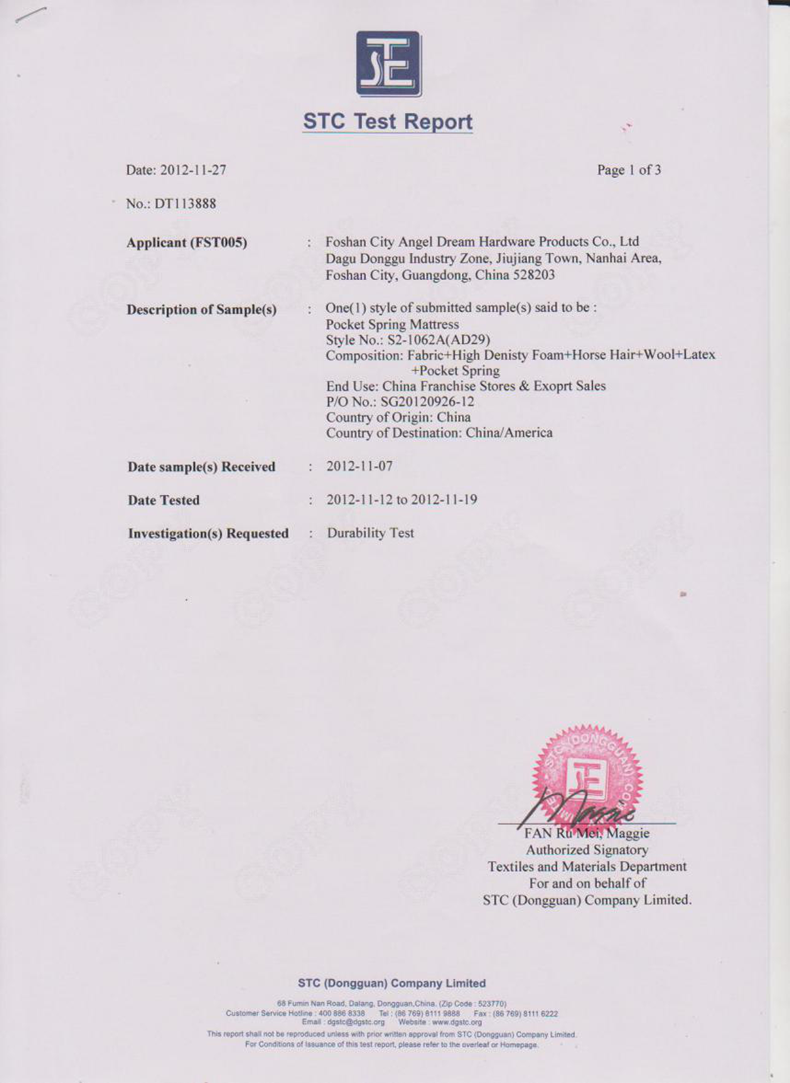 雙重?zé)崽幚砥鸬揭粋€(gè)全面消除了彈簧的內(nèi)應(yīng)力,增加抗疲勞強(qiáng)度,提高了彈性極限,使彈簧的彈性、拉力和回彈力更好,床芯不易凹塌變形,彈簧不易折斷。經(jīng)權(quán)威檢測機(jī)構(gòu)STC測試證明:嚴(yán)格按照美標(biāo)ASTM1566耐疲勞測試,西婭圖品牌床墊達(dá)到10萬次連續(xù)錘壓不變形。(吳艷 通訊員/阿東)