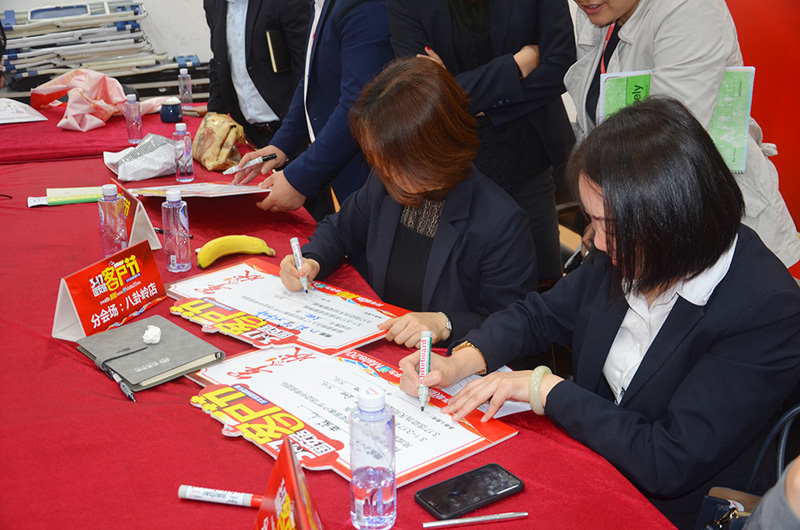 本次活動深惠七店總紛紛發(fā)言表決心,承諾勢必將全力以赴辦好開年第一場萬人團(tuán)裝會,給消費者帶來更多的優(yōu)惠,提供更貼心的服務(wù),并在全員的見證下,簽訂了任務(wù)軍令狀。目標(biāo)已定,勢必達(dá)成。國安居的家人們用最飽滿的熱情,最熱血的狀態(tài)努力拼搏,確?!?·17客戶節(jié)”活動圓滿成功。