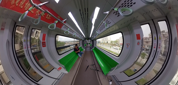 比亞迪云軌可廣泛用于一二線城市的交通接駁線、加密線,三四線城市的交通主干線,以及旅游景區(qū)的觀光線等場(chǎng)景。結(jié)合云軌視頻回傳等重點(diǎn)業(yè)務(wù)場(chǎng)景,云軌車(chē)內(nèi)安裝了360球機(jī)攝像頭,通過(guò)5G網(wǎng)絡(luò)傳輸實(shí)時(shí)回傳拍攝到的全景視頻畫(huà)面。遠(yuǎn)程操控人員借助VR眼鏡及大屏幕觀看云軌高清視頻畫(huà)面,以第一視角控制和監(jiān)測(cè)云軌運(yùn)行狀況,能在第一時(shí)間發(fā)現(xiàn)異常,迅速做出反應(yīng),預(yù)防交通危險(xiǎn)。