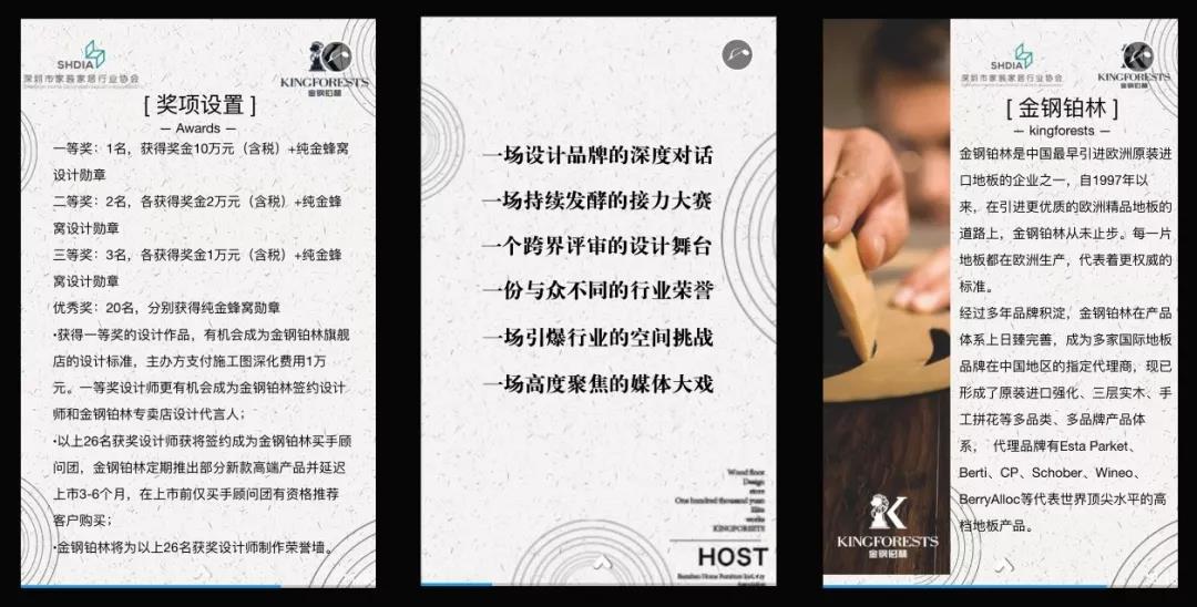 行業(yè)協(xié)會聯(lián)手中國最早引進(jìn)歐洲原裝進(jìn)口的地板企業(yè)金鋼鉑林,利用其在寶能第一空間的旗艦店即將啟幕的機(jī)會,設(shè)置十萬元的現(xiàn)金大獎來舉辦賽事,就是要推動行業(yè)設(shè)計力量的縱深發(fā)展。