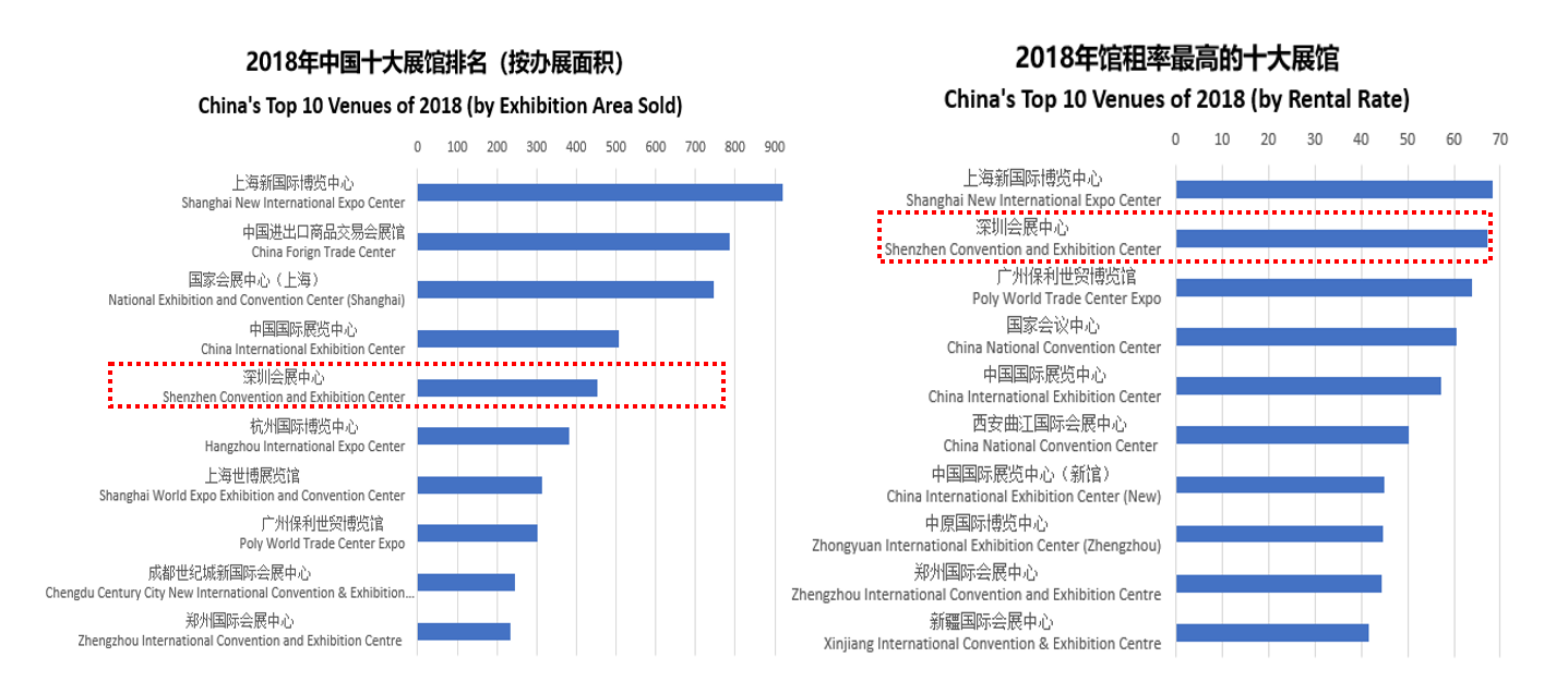 深圳作為國內重要的會展中心城市之一,長期以來僅有一個規(guī)模展館,室內展覽面積10.5萬㎡,展覽空間已遠遠跟不上深圳會展業(yè)高速發(fā)展的需求。據統(tǒng)計,2018年深圳共舉辦專業(yè)性展覽111場,規(guī)模展覽總面積348萬平方米,同比增長6.88%。展館全年使用率為65.16%,已處于超負荷運營,基本沒有引進新項目的空間,已有的14個滿館的成熟項目也沒有進一步成長的可能。