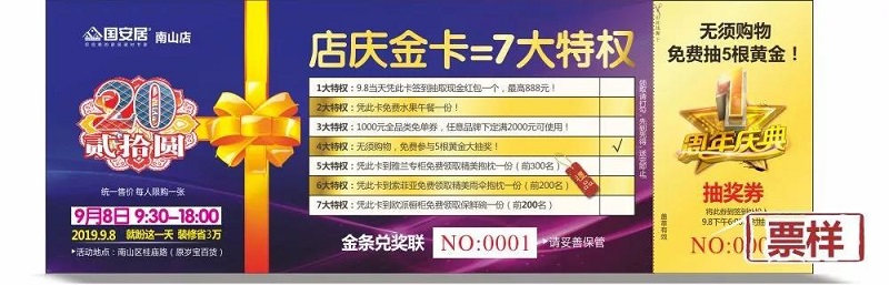 9月8日前 ,提前在國安居店面及微信20元搶購 《店慶金卡》 ,活動當天簽到即可尊享7重超值豪禮!