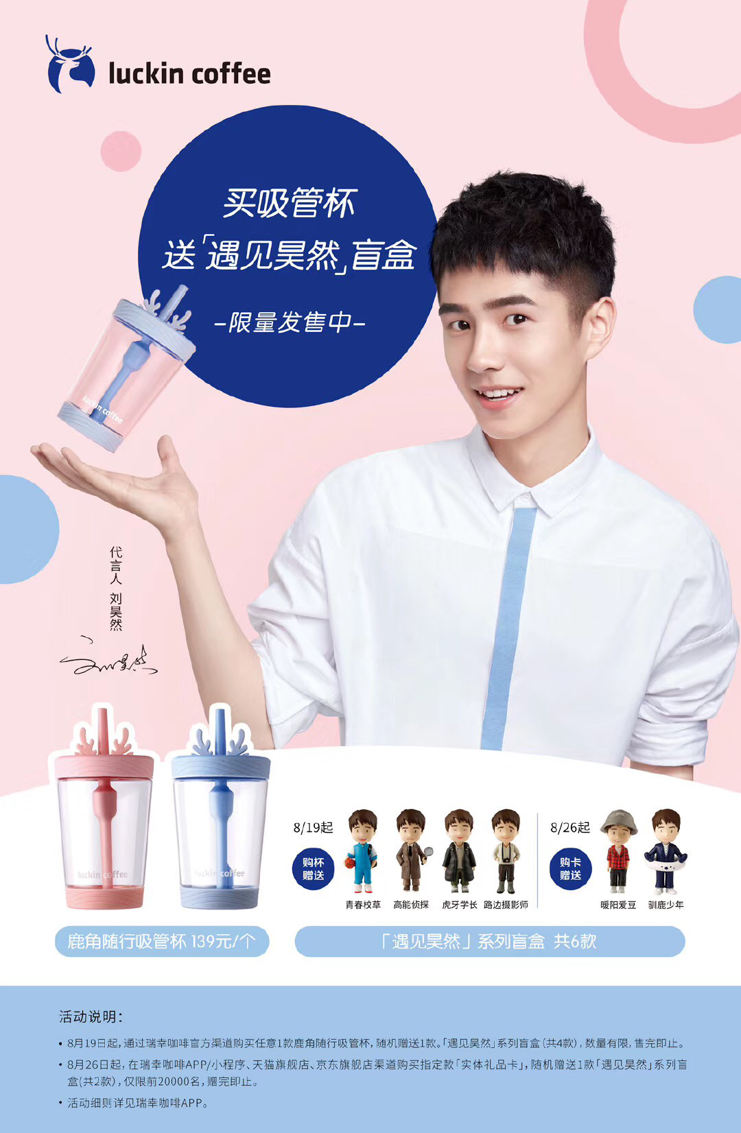 此前,瑞幸咖啡宣布在全國40個城市近3000家門店推出10余款小鹿茶產(chǎn)品,并正式邀請人氣明星劉昊然代言。為回饋新老用戶,此次瑞幸咖啡還特別上線了遇見昊然系列盲盒。