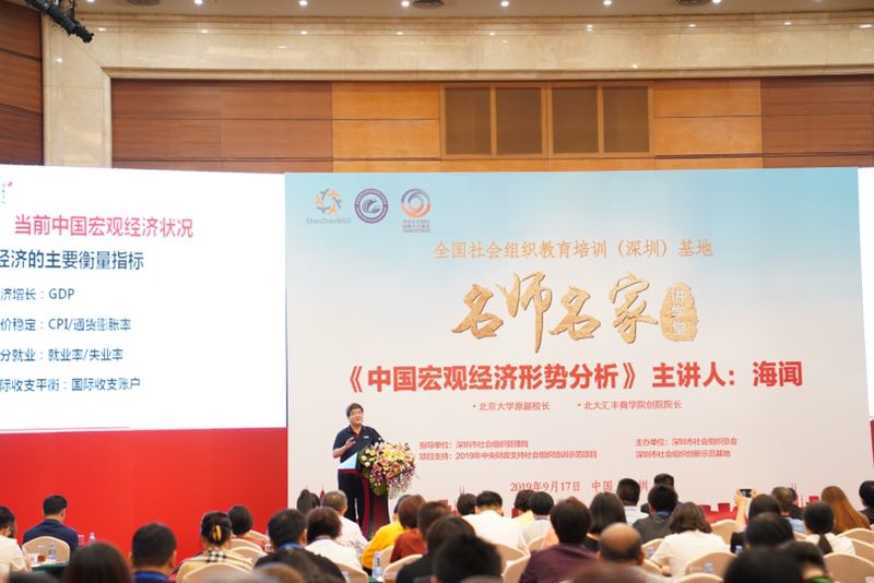 據(jù)介紹,總會依托民政部社會組織服務(wù)中心授予的“全國社會組織教育培訓(xùn)(深圳)基地”設(shè)立“名師名家講學(xué)堂”,設(shè)立兩年多來先后邀請了王石、馬蔚華、馮侖、唐杰、印順等眾多大咖“頭腦風(fēng)暴”、分享智慧,得到社會各界的普遍認(rèn)可。今年以來,作為改革排頭兵的深圳再次被委以重任,確定為中國特色社會主義先行示范區(qū),深圳面臨著面臨著全新的挑戰(zhàn)和巨大的機(jī)遇??倳鳛椤皡f(xié)會的協(xié)會”,深諳深圳社會組織及企業(yè)的迫切需求,為此講學(xué)堂特別邀請深圳匯豐商學(xué)院創(chuàng)院院長海聞教授為大家分析中國的宏觀經(jīng)濟(jì)形勢,幫助深圳企業(yè)家登高望遠(yuǎn)、把握形勢、尋找方法、積極“迎戰(zhàn)”,增強(qiáng)他們憂患意識的同時(shí)也增強(qiáng)其克服困難的信心。