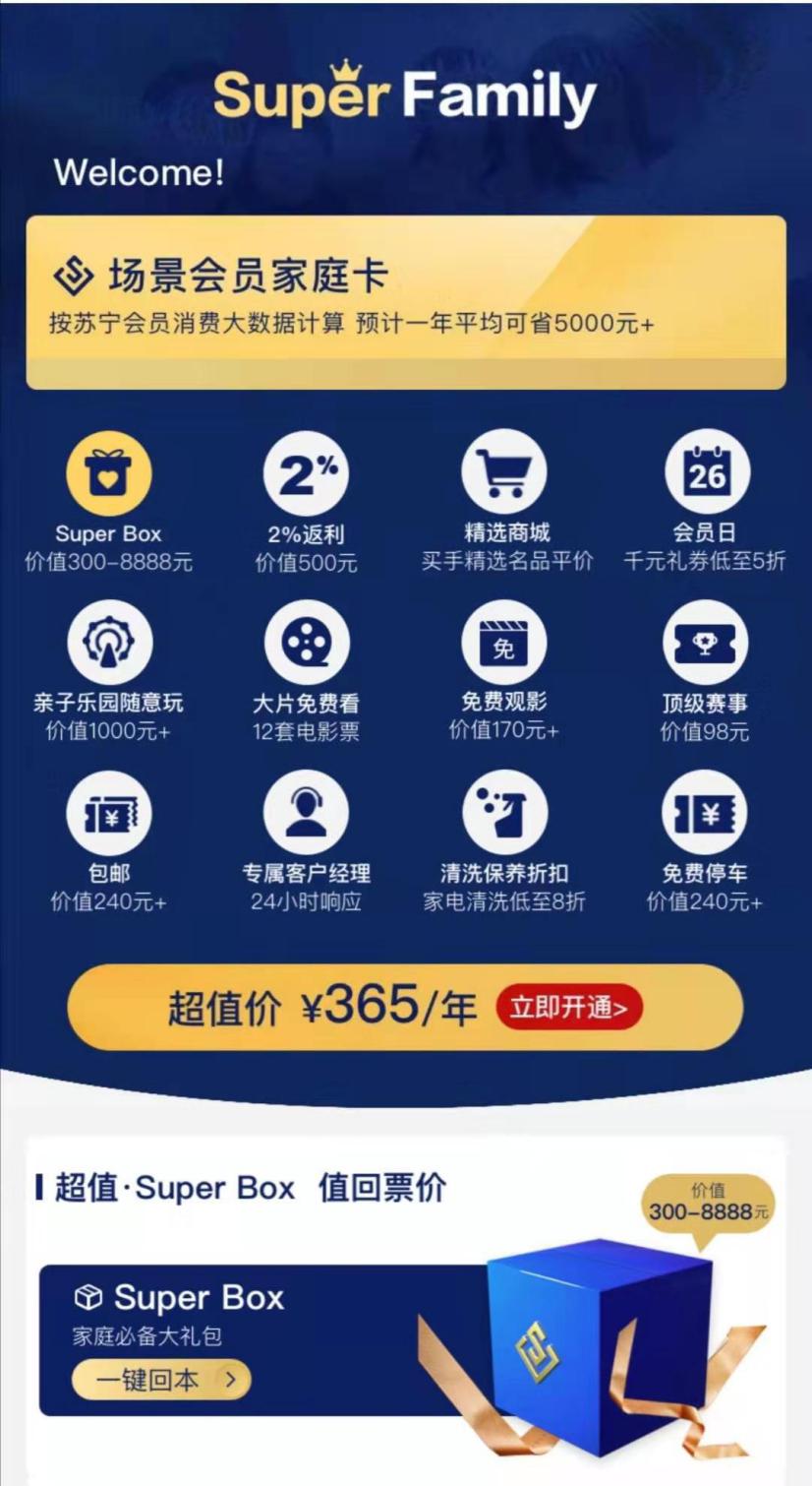 “在設計這款會員產(chǎn)品時,我們希望能觸達每一位家庭成員。”蘇寧相關負責人解釋說:“比如媽媽,她用的更多的可能是購物,那么家庭會員有購物2%的返利;爸爸可能喜歡體育,我們有頂級賽事的觀賽劵贈送;對于孩子,我們提供了免費游玩樂園、免費看電影、免費停車等福利,讓全家人盡情享受親子時光。”