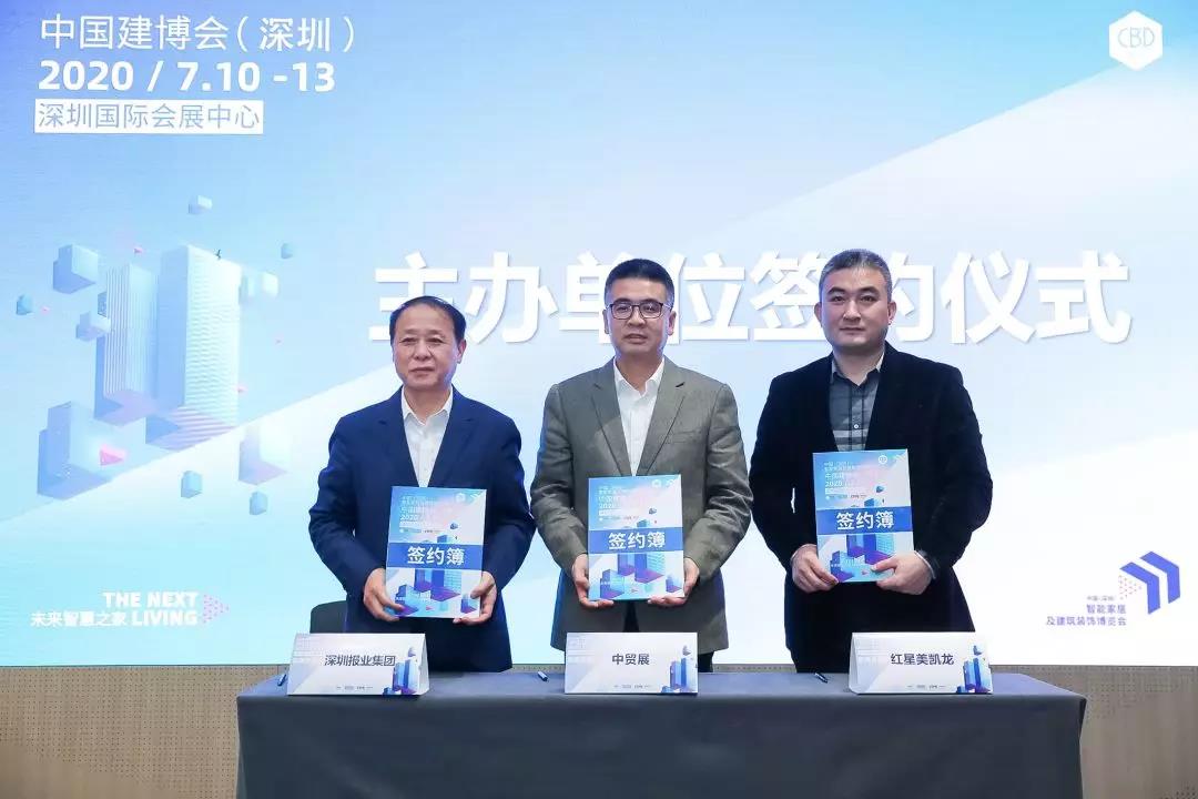 致辭結(jié)束后,中國(guó)建博會(huì)(深圳)三家主辦單位中貿(mào)展、紅星美凱龍、深圳報(bào)業(yè)集團(tuán)現(xiàn)場(chǎng)進(jìn)行簽約儀式。