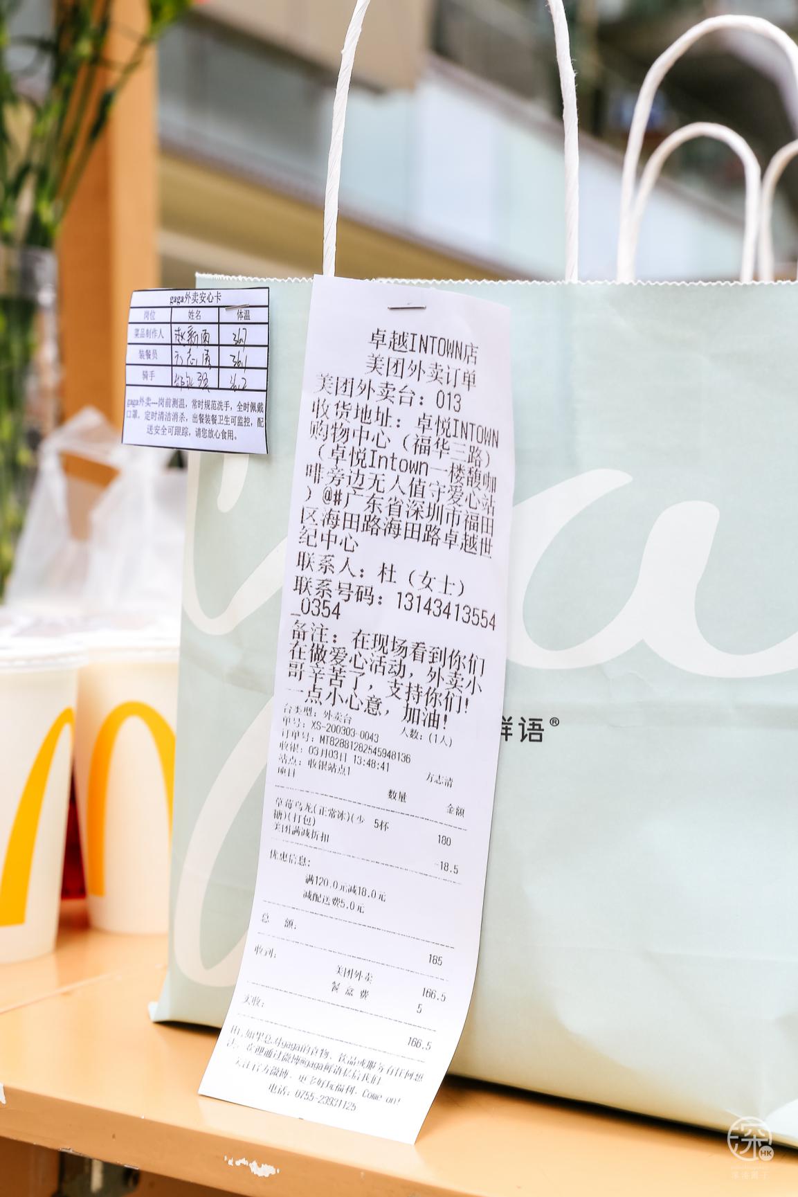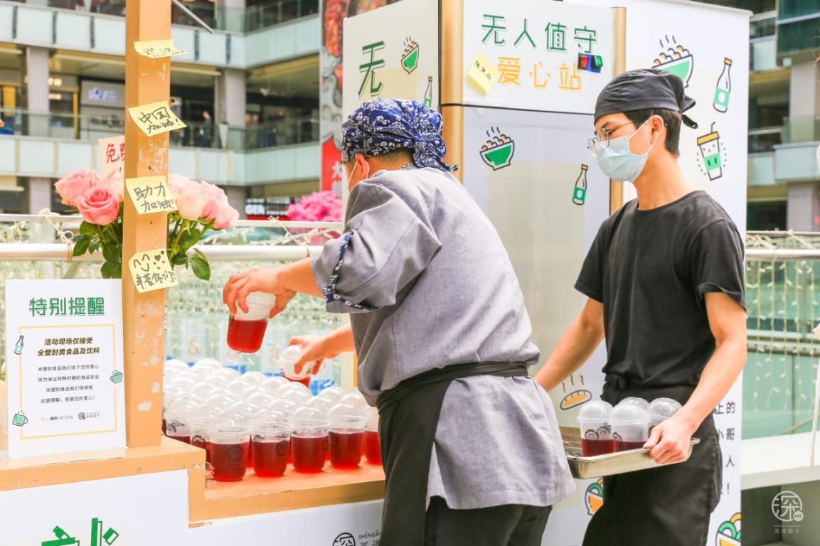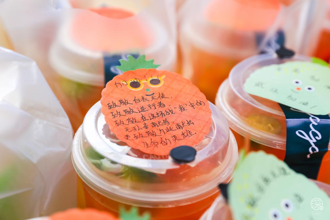 當(dāng)然除了熱心市民,來獻愛心的還有卓悅INTOWN購物中心內(nèi)的商戶:瑞幸咖啡、麥當(dāng)勞、太平洋咖啡、CoCo都可、湊湊、gaga鮮語、HUN混果汁、享甜、Bangs Burger燕遇、辣可可現(xiàn)炒黃牛肉、旬野菜在知道這次活動后,紛紛主動提供食物或飲品,給疫情期間始終奮斗在一線的服務(wù)人員們,他們值得我們好好愛著。