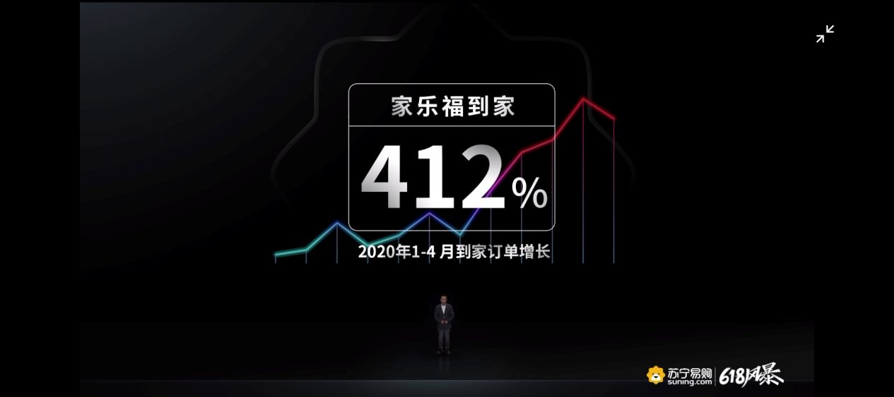 今年2月份,蘇寧家樂福到家服務上線,在全國209家家樂福門店3公里范圍內,消費者通過家樂福小程序、蘇寧易購APP、蘇寧小店APP,可以享受1小時送到家的服務。家樂福門店10公里內,實現了當日下午達、次日上午達。家樂福到家服務覆蓋時令生鮮、糧油調味、酒水飲料、休閑零食、母嬰用品、個護清潔、家居百貨、各種進口商品等,滿足了消費者“宅家抗疫”的生活剛需,上線后獲得消費者追捧。蘇寧易購一季度報顯示,家樂福中國到家業(yè)務銷售占比逐月快速提升,3月份占比近10%。蘇寧大數據顯示,蘇寧家樂福到家業(yè)務1-4月份同比增長412%。