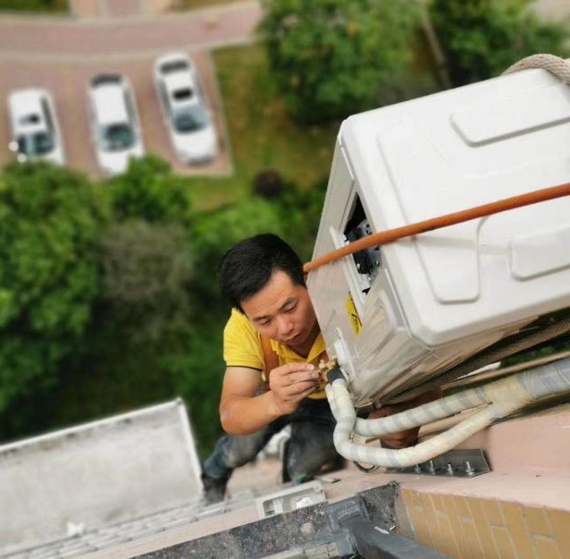 只靠一根繩,30米高空裝空調(diào)