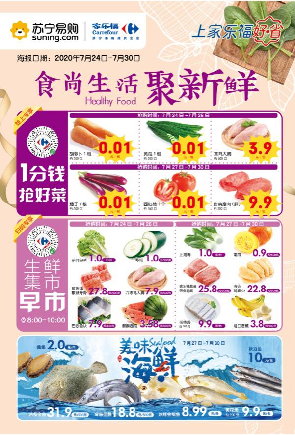 見圳客戶端·深圳新聞網(wǎng)2020年7月24日訊 為慶祝進入中國市場25周年,家樂福為線上用戶帶來專屬福利—“1分錢每天搶好菜”。即日起,消費者只需支付1分錢,即可輕松為全家?guī)Щ匾坏澜】岛貌?,輕松享受便捷的品質(zhì)消費。