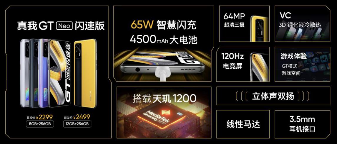 真我GT Neo閃速版閃充升級到了頂配65W,同時(shí)新增了“曙光”特別版。8GB+256GB版限時(shí)立減300元。除了閃速版,真我GT Neo也將參與限時(shí)活動(dòng),在原價(jià)基礎(chǔ)上再降200元。