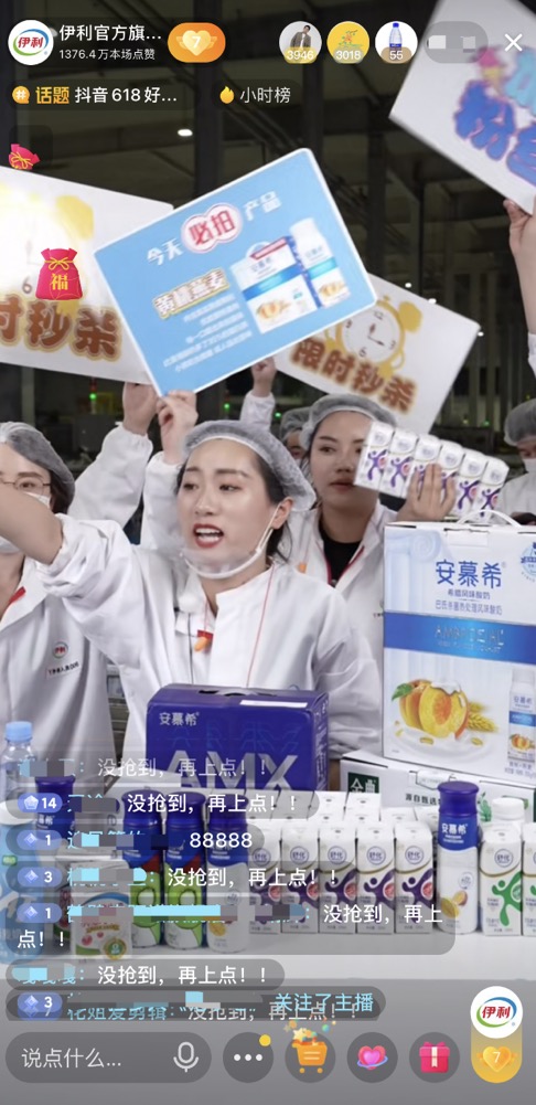 同時,伊利洞察到消費者對產(chǎn)品品質(zhì)的關(guān)注,和直播間消費者一起深入伊利工廠,直接在好奶的源頭開啟溯源直播,極大地滿足了消費者所見即所得的需求,同時也提升了直播的可看性,充分契合了興趣電商的內(nèi)核。這種新穎的直播模式最終創(chuàng)造了連續(xù)霸屏帶貨小時榜5小時的自播紀(jì)錄,在618當(dāng)天實現(xiàn)了抖音行業(yè)單日自播榜第一,單日銷售額破千萬的傲人成績。