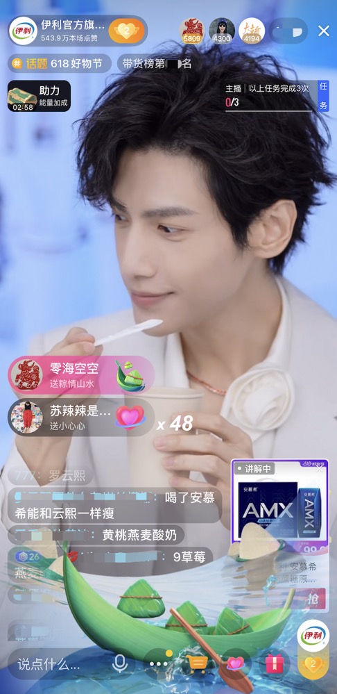 在新營銷上,伊利旗下安慕希品牌憑借強(qiáng)大的品牌力,在618期間聯(lián)合平臺打造首個乳品品牌狂歡日。邀請品牌形象大使羅云熙空降伊利抖音直播間,與消費者進(jìn)行互動直播,內(nèi)容寵粉的同時高效轉(zhuǎn)化銷售。憑借寵粉互動吸引抖音平臺年輕消費者群體,狂歡日當(dāng)日直播間消費者中,年輕人群比例高達(dá)70%。