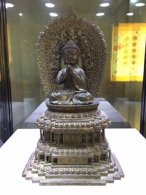繼上個(gè)月舉辦的第一季“民國(guó)瓷畫展”,目前正在展覽的是第二季“佛像藝術(shù)展”。展出了遼金時(shí)期的銀鎏金佛塔、宋代泥塑描金的書卷觀音像、唐代捶揲銀鎏金“佛說金色王經(jīng)”上下卷,還有南北朝時(shí)期的石雕彩漆描金思維菩薩像,這一期展出了29件展品。