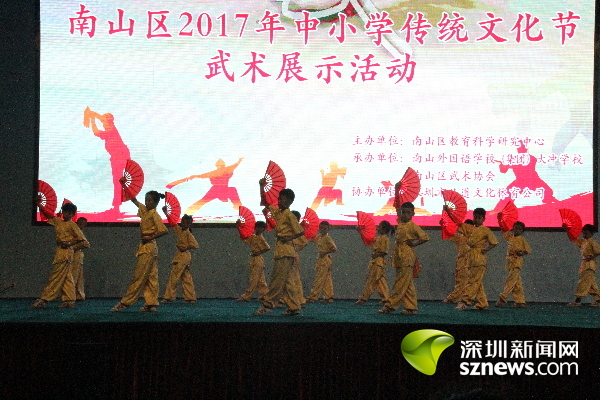 南山區(qū)2017年中小學(xué)傳統(tǒng)文化節(jié)武術(shù)展示活動(dòng)由南山區(qū)教育科學(xué)研究中心主辦,南山外國(guó)語(yǔ)學(xué)校(集團(tuán))大沖學(xué)校和南山區(qū)武術(shù)協(xié)會(huì)承辦。南山區(qū)教育科學(xué)研究中心主任余耀賢介紹,為進(jìn)一步弘揚(yáng)優(yōu)秀中華傳統(tǒng)文化,落實(shí)立德樹(shù)人的根本任務(wù),南山區(qū)教育局舉行了首屆傳統(tǒng)文化節(jié)活動(dòng),開(kāi)展了經(jīng)典詩(shī)詞特色展演、中小學(xué)書(shū)法大賽、中國(guó)戲曲和民族樂(lè)器比賽、中小學(xué)生圍棋大賽、傳統(tǒng)文化沙龍和專家報(bào)告等形式多樣的活動(dòng)。