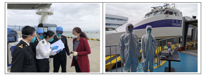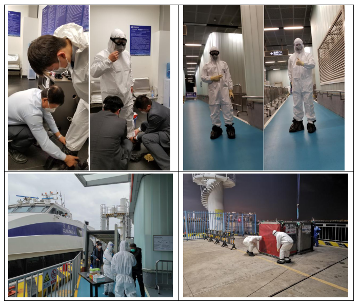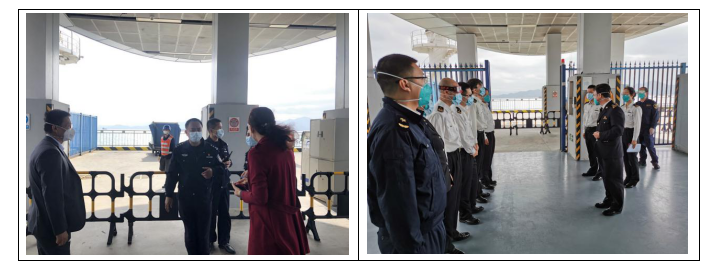 港口各級干部員工勇于擔(dān)當(dāng)、迎難而上,勠力同心、眾志成城,共同筑牢嚴(yán)防疫情輸入的堅(jiān)強(qiáng)防線,用實(shí)際行動詮釋了“牢記使命勇?lián)?dāng)”。蛇口郵輪母港呂如福常務(wù)副總經(jīng)理與港口運(yùn)營中心林麗華總經(jīng)理連夜開會部署至深夜,第二天仍早早趕到現(xiàn)場與聯(lián)檢單位共同查勘旅客動線;賴乙??偙O(jiān)接到航班通知后,放棄值班休息第一時間趕到現(xiàn)場布置各項(xiàng)保障任務(wù),并親自為一線員工穿戴防護(hù)用品;港口一線員工面對夜間加開航班旅客人數(shù)多且有發(fā)燒旅客的情況,毫不退縮、沖鋒在前,順利完成保障任務(wù),一直到深夜客船和旅客動線消毒清場完畢才下班。
