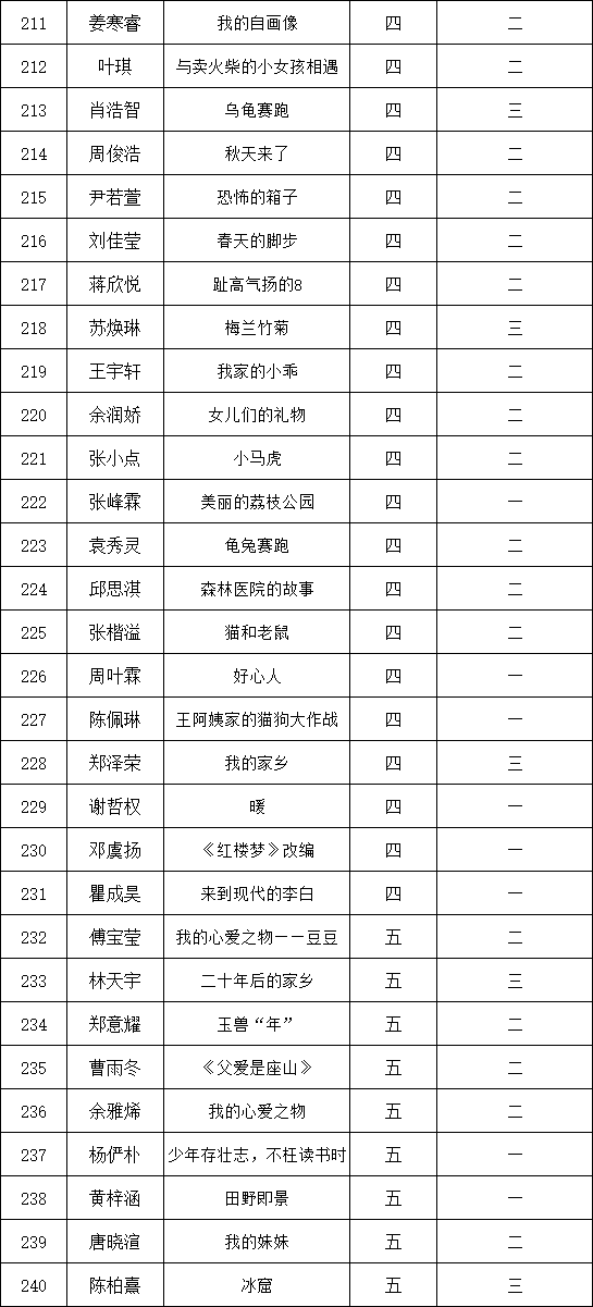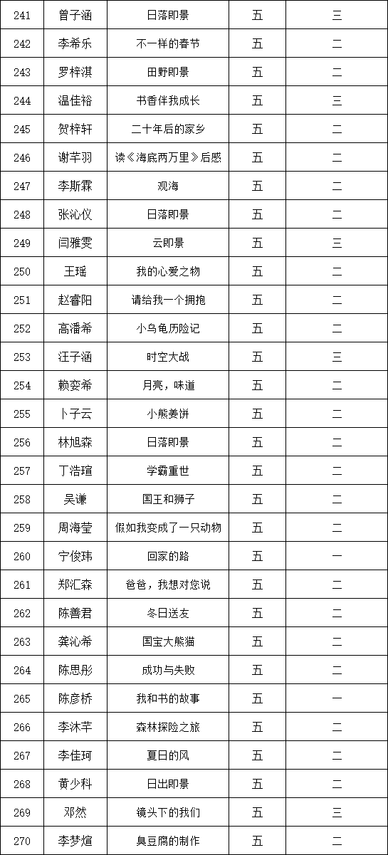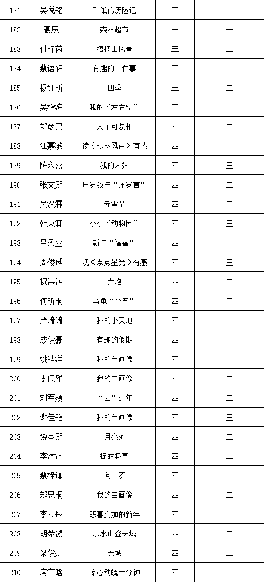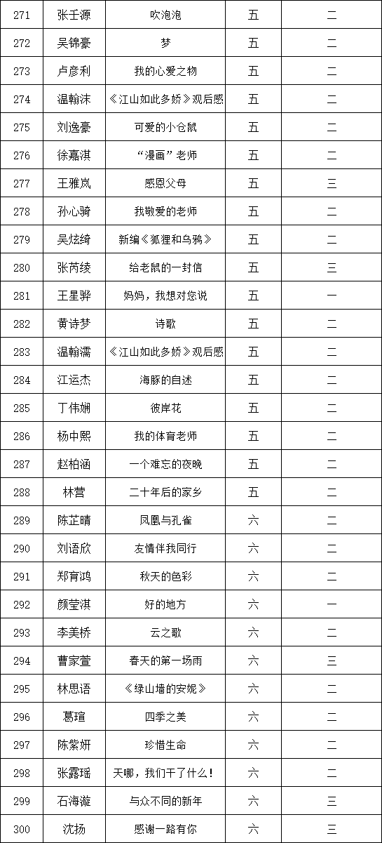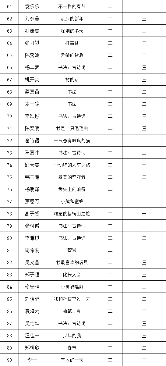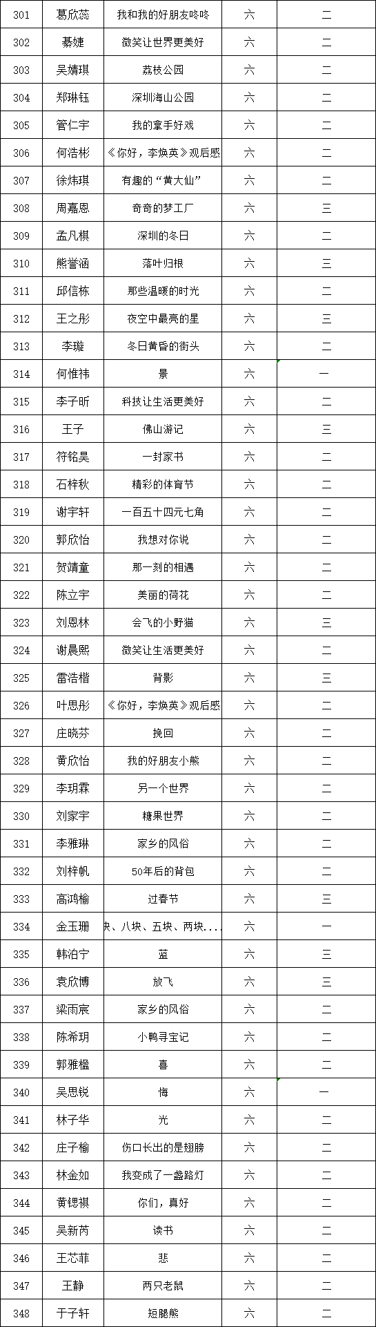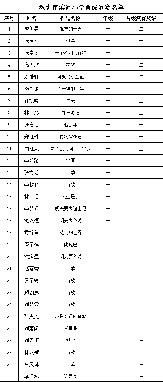 自2021年1月,活動(dòng)征稿啟動(dòng)以來,獲得了深圳市廣大中小學(xué)生、教師、文學(xué)愛好者的熱烈響應(yīng)積極參與,吸引了深圳百余所學(xué)校的上萬人關(guān)注報(bào)名?,F(xiàn)公布深圳市濱河小學(xué)校園專場晉級復(fù)賽名單如下: