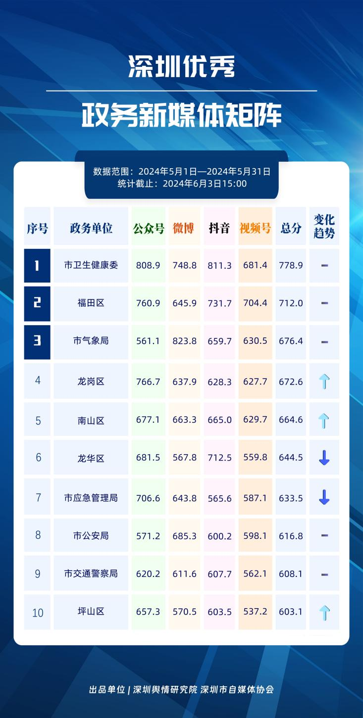 榜單在持續(xù)展示深圳政務(wù)新媒體矩陣建設(shè)成效的同時(shí),梳理總結(jié)了深圳政務(wù)微信公眾號(hào)、微信視頻號(hào)、微博號(hào)、抖音號(hào)、頭條號(hào)的運(yùn)營方法與經(jīng)驗(yàn),是政務(wù)公開、回應(yīng)群眾關(guān)切的重要載體。5月,哪些政務(wù)新媒體在本期深受好評(píng),榮登榜單?《深圳優(yōu)秀政務(wù)新媒體矩陣》(2024年5月期)邀您共同關(guān)注。