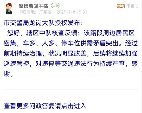 10. 帖文《龍崗區(qū)坂田這一路段長期有違停車輛導(dǎo)致交通堵塞嚴(yán)重》