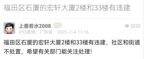 8. 帖文《福田區(qū)石廈的宏軒大廈2樓和33樓有違建》