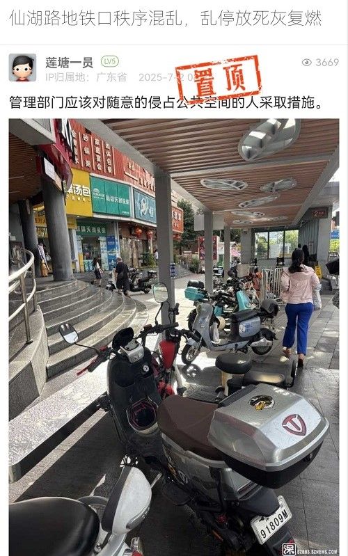 5. 帖文《仙湖路地鐵口秩序混亂,亂停放死灰復(fù)燃》