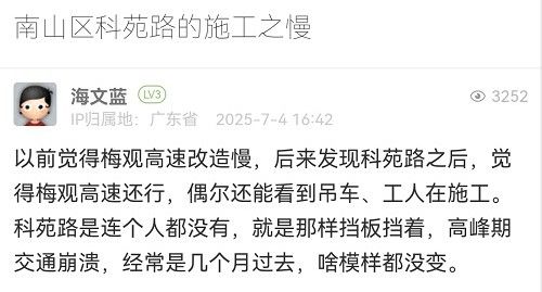 13. 帖文《南山區(qū)科苑路的施工之慢》