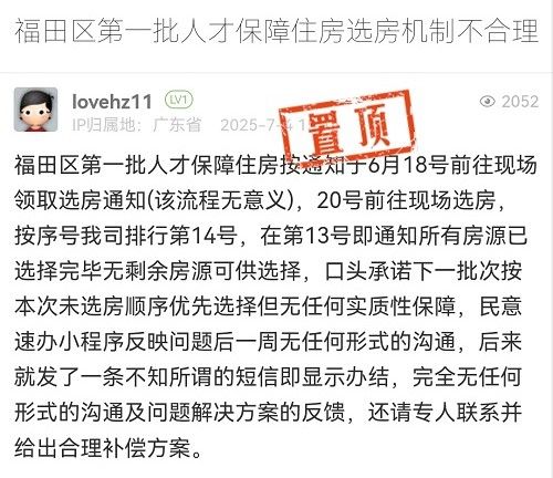 9. 帖文《福田區(qū)第一批人才保障住房選房機制不合理》
