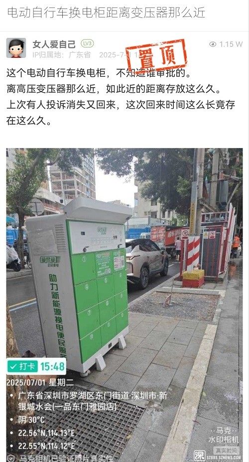 11. 帖文《電動自行車換電柜距離變壓器那么近》