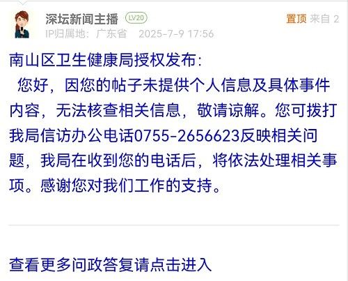 網(wǎng)友如有相關(guān)訴求、建言和意見的,可直接在深圳論壇“我說深圳事”欄目發(fā)帖進行報料、投訴,或者通過官方報料QQ以及問政熱線等渠道反映訴求。