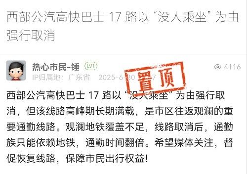 1. 帖文《西部公汽高快巴士 17 路以 “沒人乘坐” 為由強行取消》