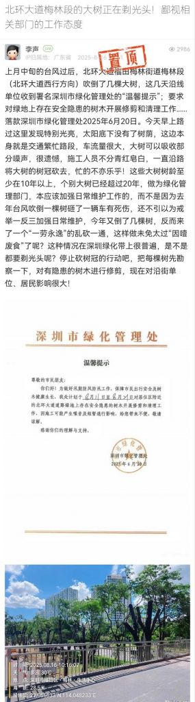 31. 帖文《北環(huán)大道梅林段的大樹(shù)正在剃光頭!鄙視相關(guān)部門(mén)的工作態(tài)度》