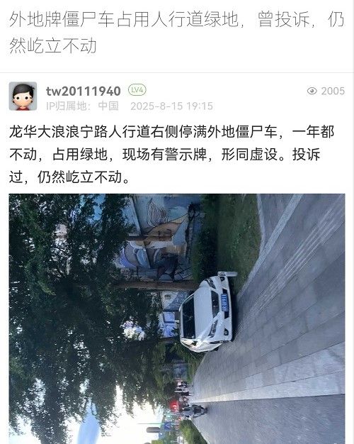 21. 帖文《外地牌僵尸車(chē)占用人行道綠地,曾投訴,仍然屹立不動(dòng)》