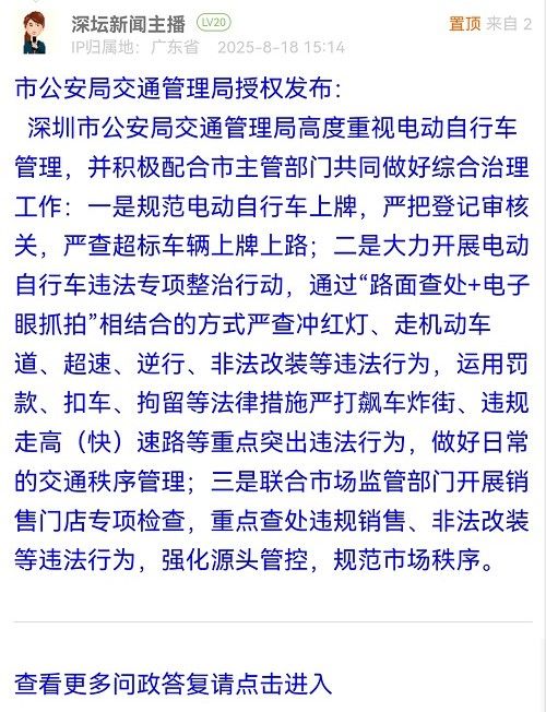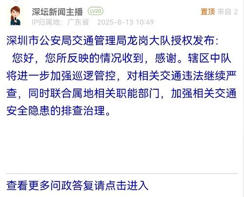 據(jù)統(tǒng)計(jì),2025年8月11日-2025年8月17日,網(wǎng)友在深圳論壇發(fā)布問(wèn)政類帖文共31篇,得到相關(guān)單位正式回應(yīng)的帖文數(shù)為31篇,本期簡(jiǎn)報(bào)回應(yīng)速度最快的單位:市市場(chǎng)監(jiān)督管理局光明監(jiān)管局、福田交通局、龍華區(qū)民治街道辦事處、南山區(qū)南頭街道辦事處、市公安局交通管理局龍崗大隊(duì)、龍崗區(qū)衛(wèi)生健康局、南山區(qū)城市管理和綜合執(zhí)法局、福田區(qū)梅林街道辦事處、羅湖區(qū)蓮塘街道辦事處。