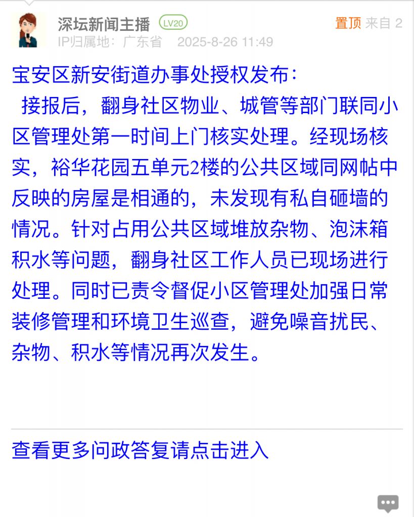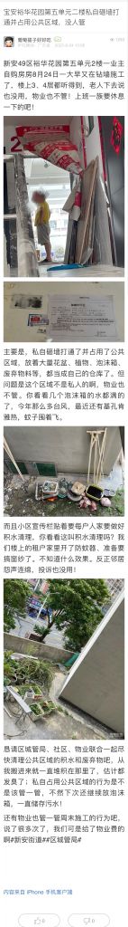 37. 帖文《寶安裕華花園第五單元二樓私自砸墻打通并占用公共區(qū)域,沒(méi)人管》