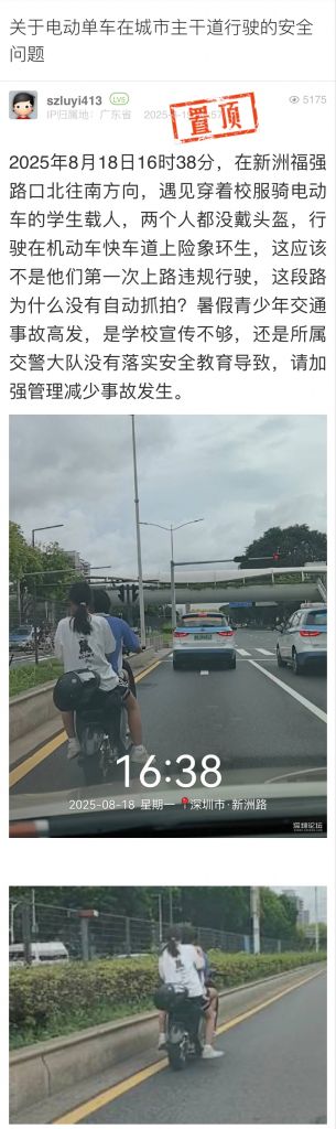 7. 帖文《關(guān)于電動(dòng)單車在城市主干道行駛的安全問(wèn)題》
