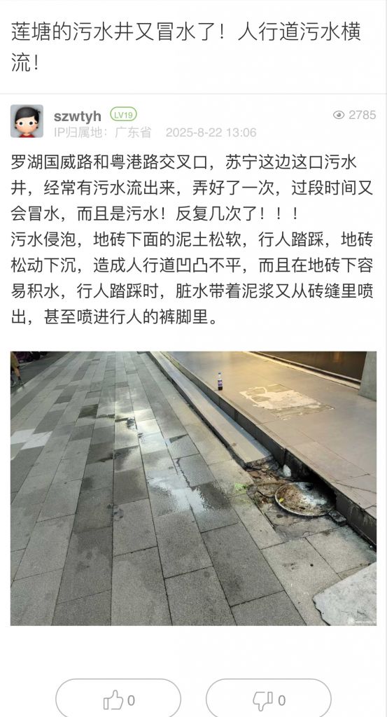 28. 帖文《蓮塘的污水井又冒水了!人行道污水橫流!》